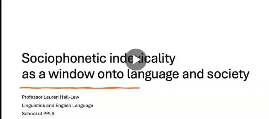 Professor Lauren Hall-Lew Inaugural Lecture Recording of Professor Lauren Hall-Lew's Inaugural Lecture View media transcript Hello. Can you hear me? O. Yes. I think you can hear me. Welcome, everybody. My name is Holly Brannigan, and I'm here as head of the School of Philosophy Psychology and Language Sciences. And I'd like to welcome you to the inaugural of Professor Lauren Hall-Lew. So on behalf of the Department of English Language and Linguistics, the School of Philosophy, Psychology and Language Sciences and the College of Arts Humanities and Social Sciences. There's a lot of words there. I'd like to welcome all of you who've joined us this evening from across Edinburgh and indeed much further afield for this special event. And I would like to give an especially warm welcome to Lauren's family and friends, and in particular, her father, Alan and stepmother Mable, who've come all the way from the USA to join us this special evening. And to her husband, Jefferson, her daughter, Isla and her son Liam. We're so pleased. And we're so pleased that you're able to be here with us. So let me introduce our inaugural lecture. Professor Lauren Hall-Lew was born in Hilo, Hawaii. She holds a BA in linguistics from the University of Arizona and an MA and a PhD in Linguistics from Stanford University. Following the award of her PhD in 2009, she won a prestigious Andrew W Mellon Postdoctoral Fellowship, which she undertook at the University of Oxford. And subsequently attracted no doubt by the similarity in climate between Hawaii, Arizona, and Edinburgh. She moved to join the Department of Linguistics and English Language in the School of Philosophy, Psychology and Language Sciences here at the University of Edinburgh as a lecturer in 2010, and she was promoted to Reader in 2017. Then in August 2022, she was promoted to Professor and awarded a Personal Chair of Sociolinguistics. It's for her inaugural lecture in this role that we're here to celebrate this evening. I'd like to something about her research interests. Her research focuses on how speech conveys social information, and she has published extensively in this area, including work that investigates linguistic variation and ethnic identity in North America. The relationship between language identity and tourism and the expression of identity in Scottish politicians' language. She's co editor of the book Social Meaning and Linguistic Variation, Theorising the Third Wave, which was published with Cambridge University Press in 2021. Professor Hall-Lew's recent work includes a study of the impact of COVID through the Lothian Diaries project, which she set up in collaboration with colleagues in the midst of the pandemic, shows what a dedicated researcher she is that in the midst of all that difficulty, one of her first thoughts was, what research can we do here and how can we make it useful? That project investigates individuals experiences of the pandemic. In 2022, she was awarded a highly competitive Personal Research Fellowship from the Royal Society of Edinburgh to pursue this work. And highlighting the relevance of her work for society beyond academia, her work on COVID 19 was shortlisted for the University of Edinburgh Impact Prize for Responsible Engagement and Innovation. A new line of research she was awarded a British Academy Small Grant earlier this month to conduct the first study in sociolinguistics on homelessness. Now there are so many fascinating topics that Professor Hall-Lew has studied? I feel slightly bad about mentioning some of the ones that she's not going to be talking about tonight because they sound so interesting. These include her work on regional dialects of Akan, the dominant language of Ghana, her work on social class differences in the English that's spoken in Edinburgh, and the work that she's been carrying out in collaboration with Professor Graeme Trousdale about the pronunciation of the word Brexit. Is it Breksit or is it Bregzit? But though we won't be having any formal question session after the lecture today, I'm sure that she would be happy to answer any questions you have about those topics during the post talk reception, which will be taking place outside the lecture hall. As well as her own research, Professor Hall-Lew has made a substantial contribution to her disciplines to her editorial work, including her work as associate editor of the pre-minent linguistics journal, Language. From January 2025, as co-Editor-in-Chief of her field's flagship journal, the Journal of Sociolinguistics. Now, although it's very easy to focus on Professor Hall-Lew's outstanding research achievements, and you can see quite how substantial they are. I would also like to mention some of the other amazing work that she's done. Because truth to tell she is a role model in so many ways. She's a devoted teacher who every semester is nominated for her excellence in teaching, and in 2013, actually won the top Edinburgh University Students Association Award for Excellence in teaching in Humanities and Social Sciences. She's also, I can personally attest, a generous colleague who freely shares her time and experiences with her colleagues as a mentor. She is a community builder in all kinds of ways. Everywhere she goes, she sets up networks and support for those around her. And she's made a particular contribution to equality, diversity, and inclusion throughout her career. At Edinburgh, as well as the contributions that she's made to EDI within the school, including as our EDI director, where, for example, she set up our Global South Speaker Series. She's been active within the university, most notably for her work in creating and running a university wide network and mentorship scheme for racialized staff. This substantial achievement was done so much to support and develop the experience of staff and is highly appreciated by all the staff we've benefited from the support and mentoring that it offers, was recognised in 2021 through t